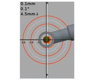 Following a brief drill or implant calibration, Navident dynamically presents the deviation between the actual/planned position and orientation of the drill/ implant, guiding the surgeon to accurately implement the plan.